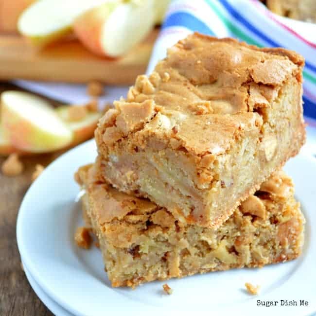 Chewy dessert bars layered with fresh apples, cinnamon, brown sugar, and peanut butter chips. Chewy Apple Peanut Butter Bars are easy to make and are totally addictive.