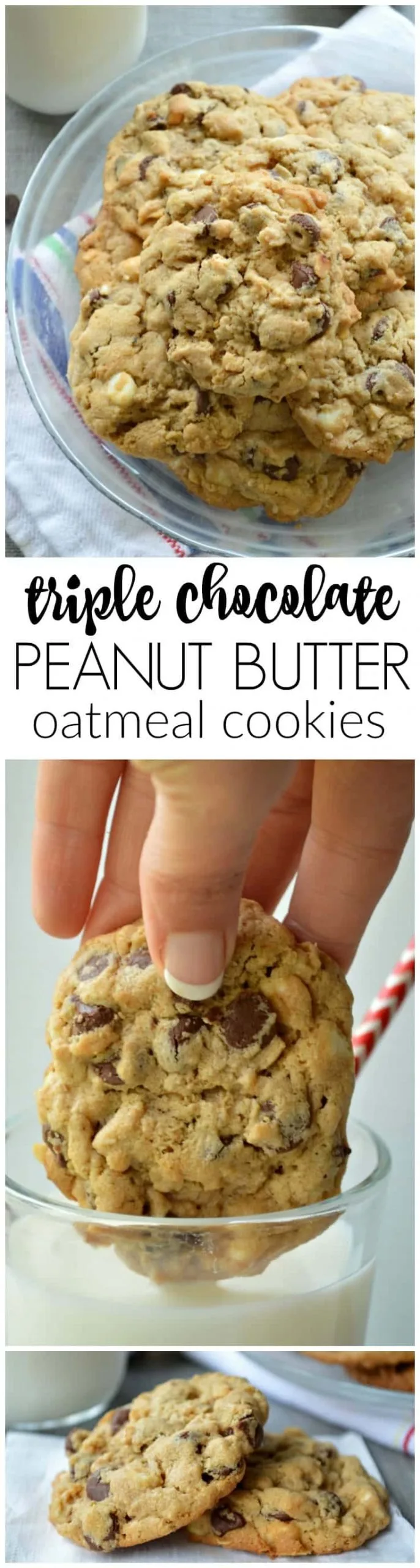Triple Chocolate Peanut Butter Oatmeal Cookies are chewy chocolate perfection! Grab your glass of milk and get ready. These are my ACTUAL favorite cookies.