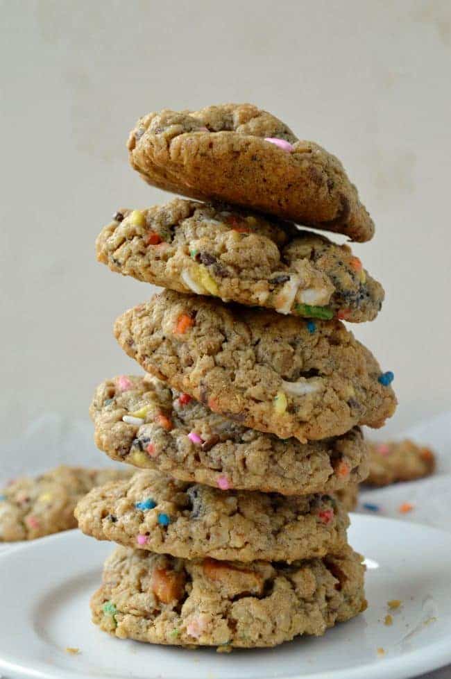 I feel like somewhere along the way someone made up an unwritten rule that says that peanut butter and oatmeal cookies cannot have sprinkles. Of all the recipes I read daily I cannot recall a single peanut butter or oatmeal cookie recipe with sprinkles. And so I had to fix that problem.
