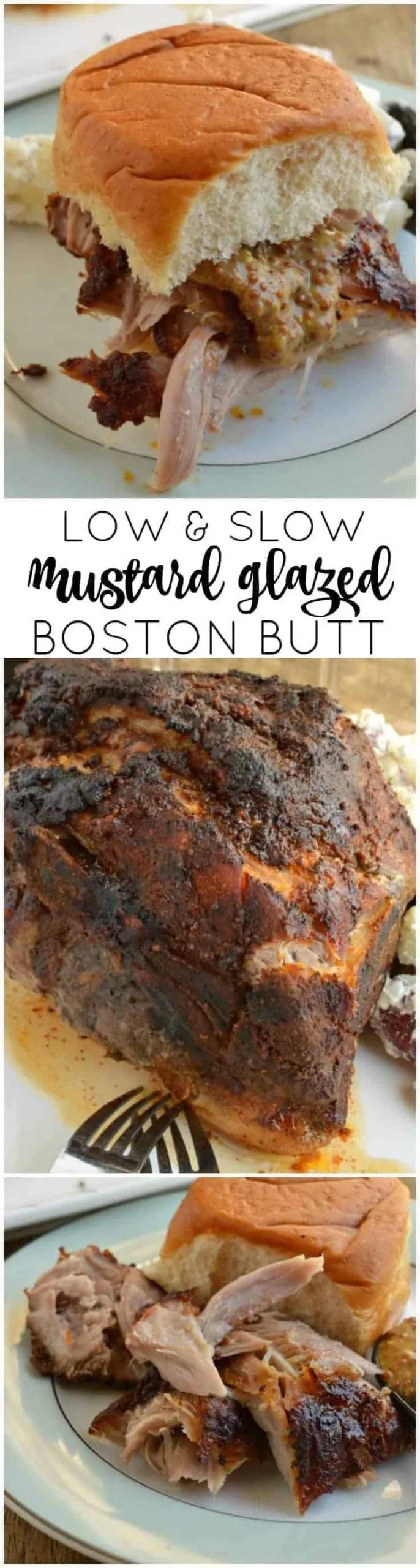 Mustard Glazed Blade Pork Roast (also known as a Boston Butt Roast) is cooked in the oven low and slow. You don’t need a fancy smoker to enjoy a good plate of barbecue!