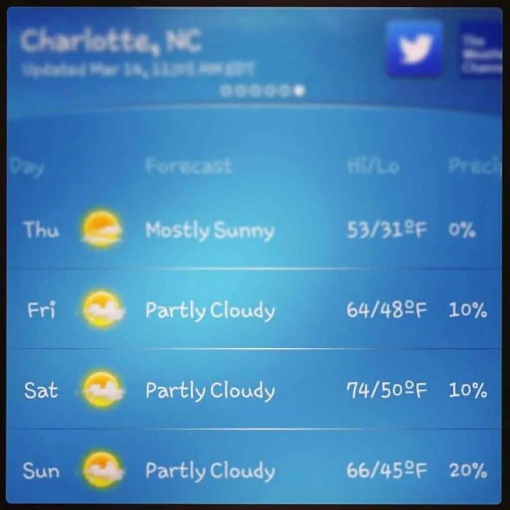 #4- This was the weekend forecast for my corner of North Carolina. SPRING!!! Is something to get happy about.Nine West Vintage America Oro Flats