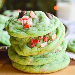 This year I decided to go the drop cookie route again with these Pistachio Pudding Cookies. The color is so festive! And pistachios are always a favorite.