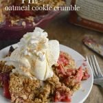 - Make the oatmeal cookie crumble by mixing together the oats, brown sugar, Organic Stone Ground Whole Wheat Flour, cinnamon, and kosher salt. Use a box grater to add the butter to the bowl and mix it in with your fingers until coarse crumbles are formed. Sprinkle the crumbles over the top of the pie. This makes a lot so I will kind of gently press the oatmeal cookie crumbles down a little before adding the rest. It forms a crust that is unbelievable.