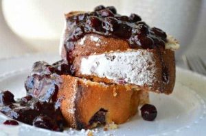 Blueberry Peach Pound Cake with Boozy Blueberry Sauce is perfect with fresh or frozen blueberries. Bonus! There’s rum!