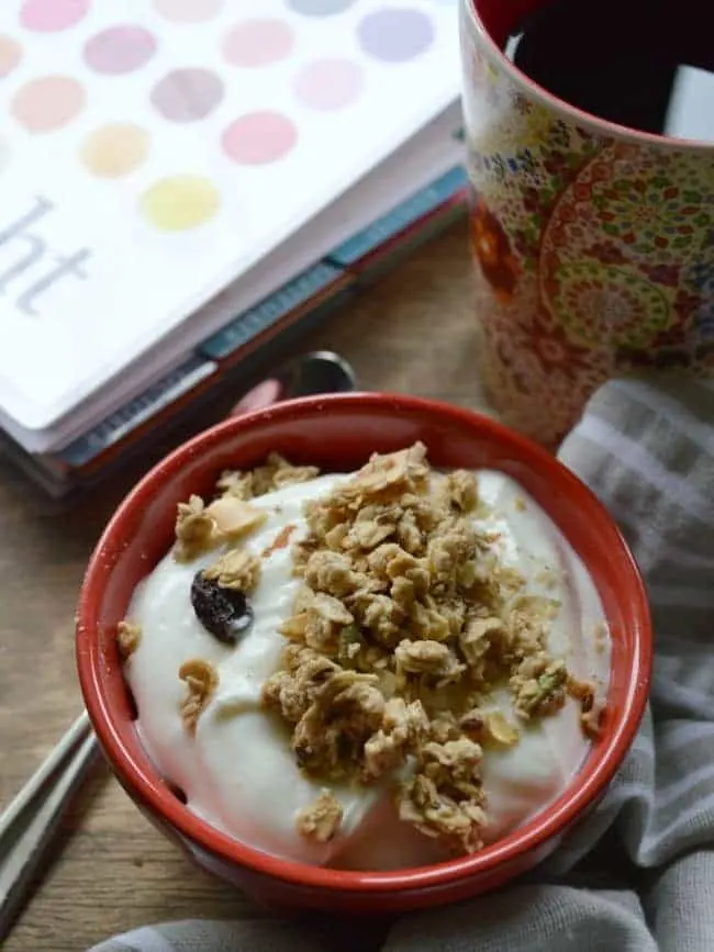 I eat yogurt and granola almost every day. It is my favorite quick breakfast that does not require any stove-standing. It fills me up more than cereal and I love love love that granola crunch.